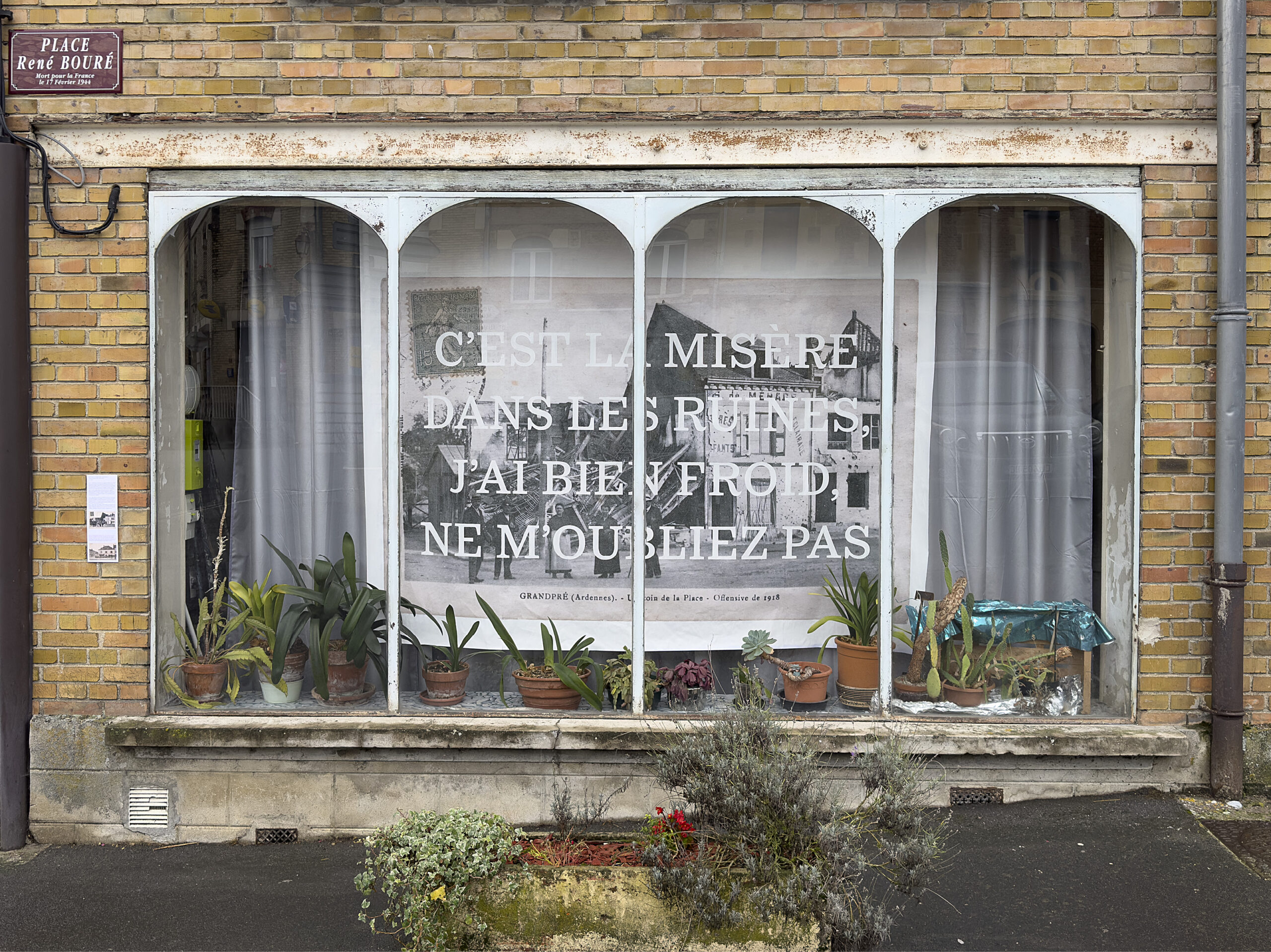 A selection of photographs from the exhibition and interventions across the village of Grandpré.